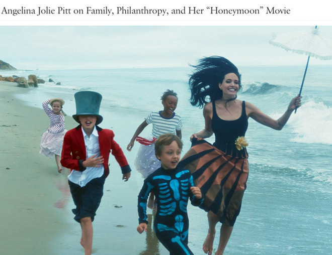 Հոլիվուդի ամենագեղեցիկ ընտանիքը՝ Անջելինա Ջոլին և Բրեդ Փիթը, իրենց 6 երեխաների հետ հայտնվել են ամերիկյան Vogue-ի էջերին: Ամսագրի գլխավոր շապիկը զարդարել է միայն Ջոլին։